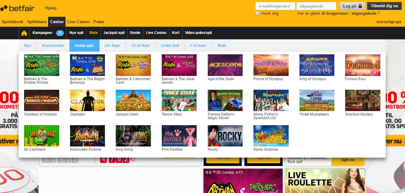 - Betfair Casinos spiludvalg
