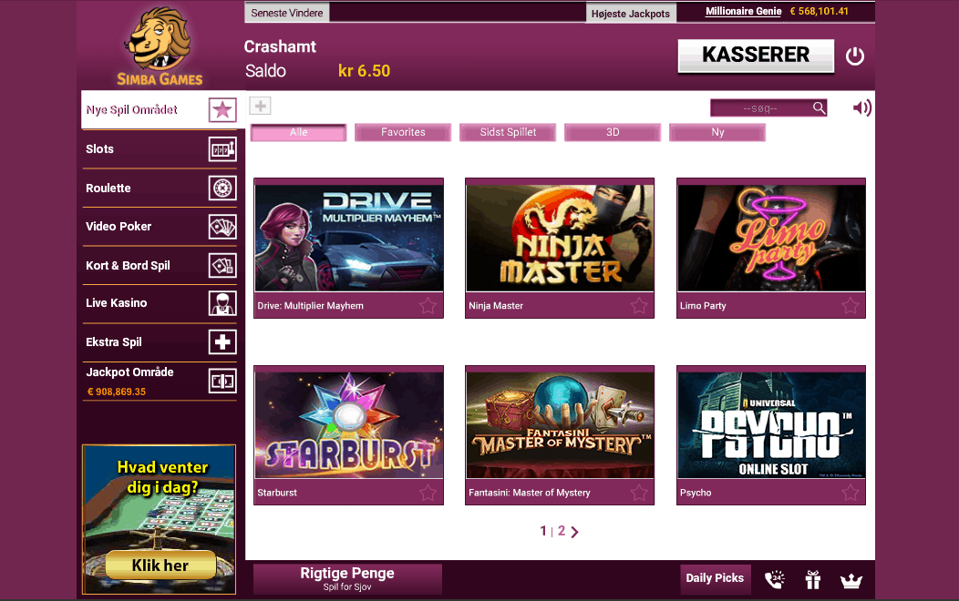 Det kan vi garantere fordi Simba giver dig ca. 700 forskellige spil at vælge mellem, så du skal være ualmindeligt kræsen, hvis du ikke kan finde et spil, som kan fange din opmærksomhed.